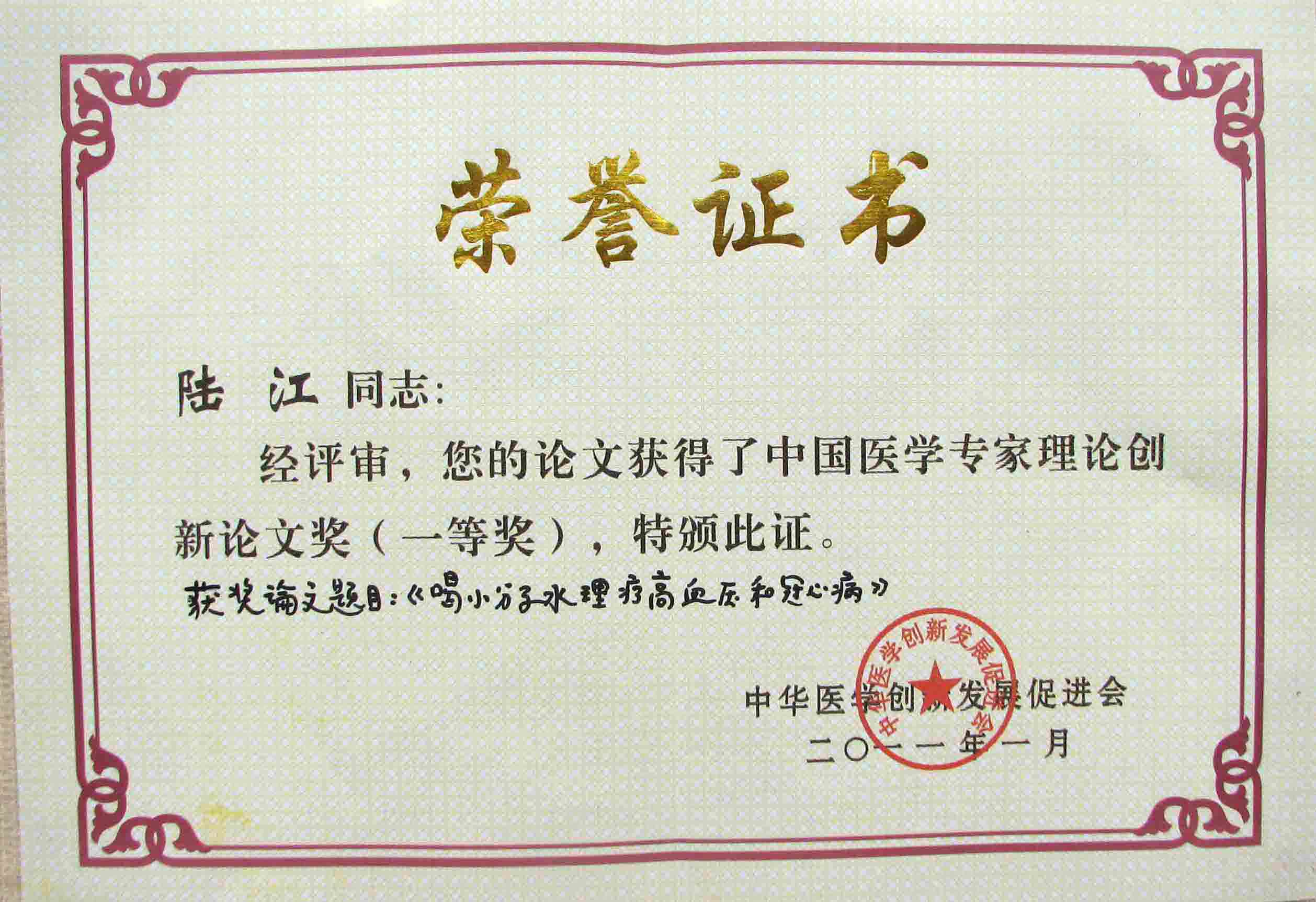 人類幾千年來患以上病癥需終生服藥,幾十年也不能治愈。可是我國南寧的高級工程師陸 江,于1990年想根治高血壓,研究發(fā)明了離子水瓶,處理出微小分子團(tuán)水供飲用,經(jīng)過醫(yī)院臨床試用和專家鑒定,1999年獲中國發(fā)明專利權(quán),產(chǎn)品于2000年投放市場后一直跟蹤調(diào)查,據(jù)全國各地用戶反饋:祛除了高低血壓、糖尿病和冠心病,并使前列腺增生、咽喉炎、鼻竇炎、慢性氣管炎、支氣管炎、矽肺病、哮喘、慢性胃炎、腸炎、慢性膽囊炎、慢性腎炎、腎衰、膀胱炎、便秘、痔瘡、風(fēng)濕性關(guān)節(jié)炎和濕疹皮炎及中風(fēng)后遺癥等病癥不藥而愈。為什么喝微小水能治20多種病?陸 江從1991年德國科學(xué)家發(fā)現(xiàn)細(xì)胞膜水通道僅為2納米獲得啟發(fā),認(rèn)為多種器官患病是因細(xì)胞脫水,不能正常代謝和分裂增殖,才使器官細(xì)胞減少致衰弱萎縮而形成細(xì)胞缺水性病癥。22年來的實(shí)踐有力地支持了“細(xì)胞脫水致病”這一重要論點(diǎn),表明喝微小水可滿足細(xì)胞的生理需求,補(bǔ)水就能祛病,是生命科學(xué)新亮點(diǎn)。