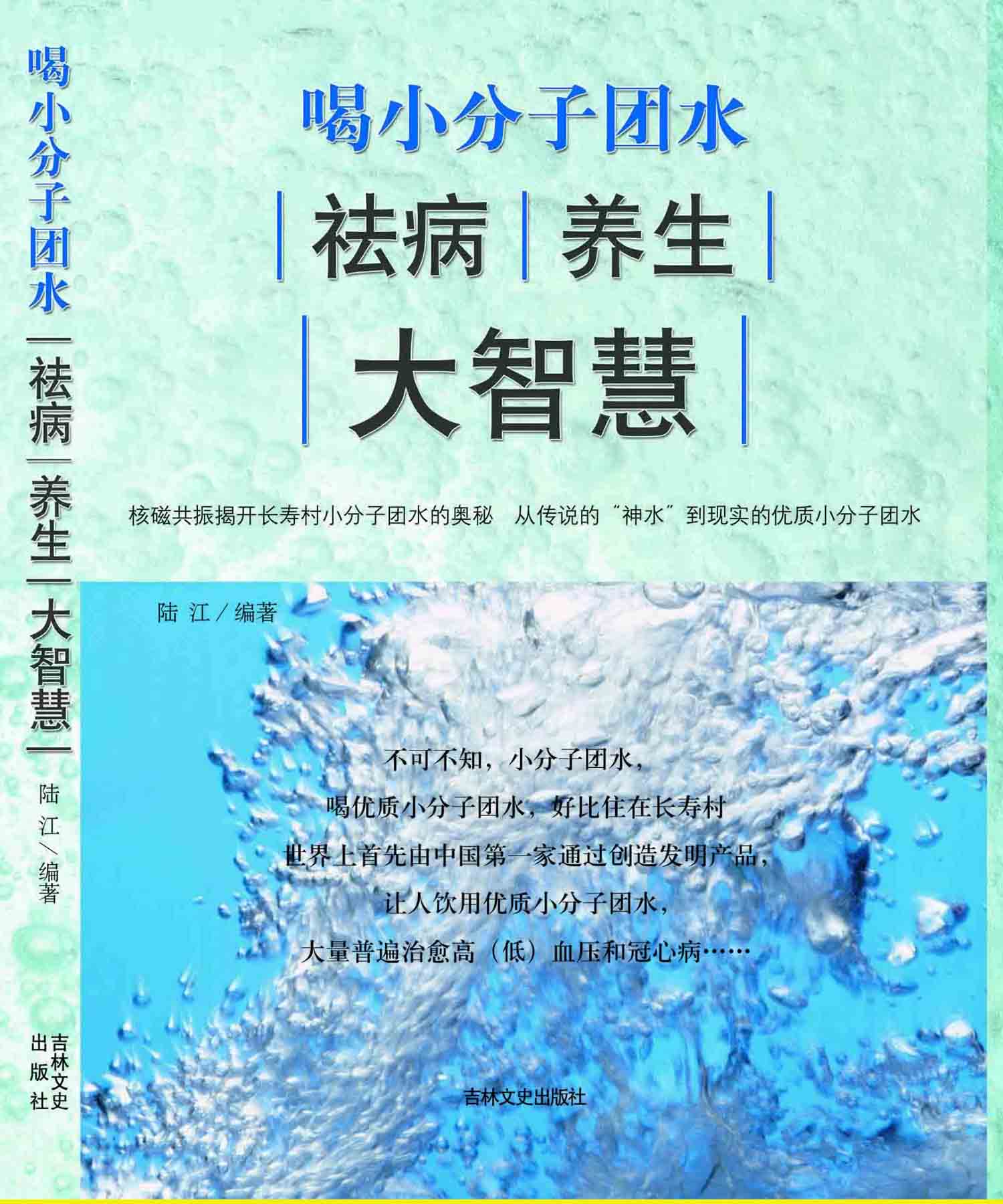 《喝小分子團(tuán)水 祛病養(yǎng)生大智慧》一書,系陸江編著,2010年9月由吉林文史出版社發(fā)行,16開本內(nèi)頁220,已售完。